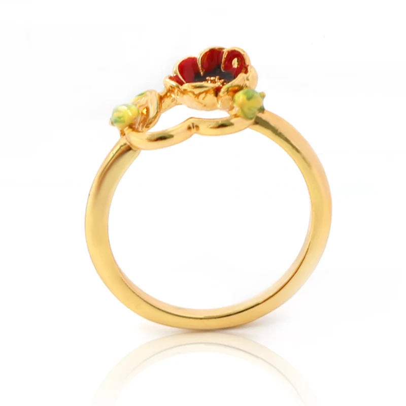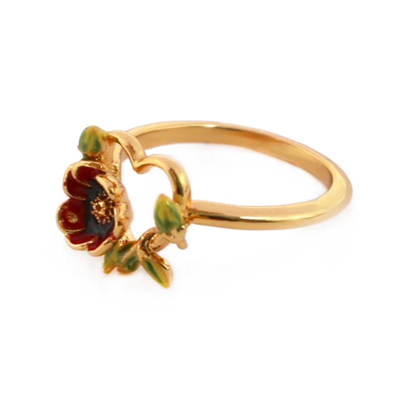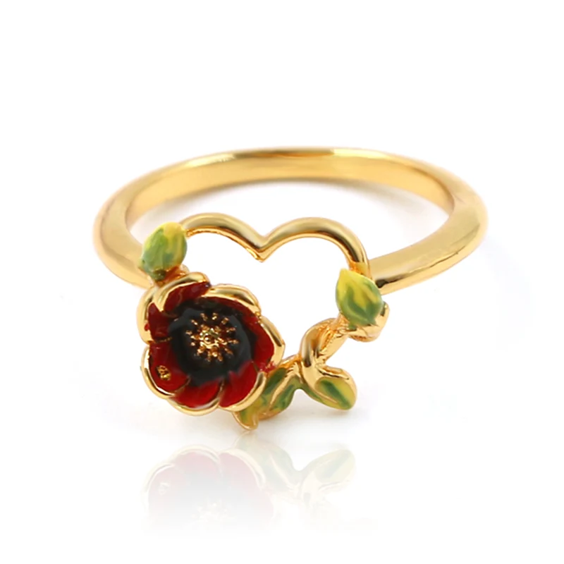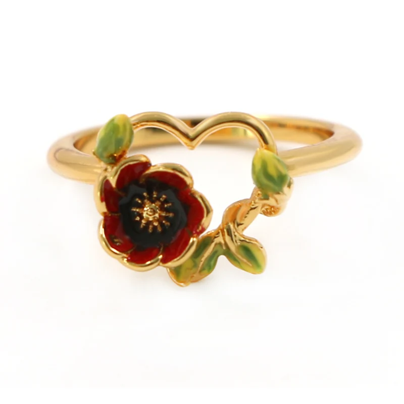 Hieno emali -käsityötaito: Messinki -emalikukka - Sydämen rengas sisältää monimutkaisen emali -täyttöprosessin. Elävät värit levitetään varovasti kukkakuvioon, jolloin saadaan kolmen ulottuvuus ja silmä - tarttuva efekti. Emali on kestävä, häipymätön ja antaa renkaan kukkalle elinikäisen ulkonäön, ikään kuin se olisi täydessä kukassa.