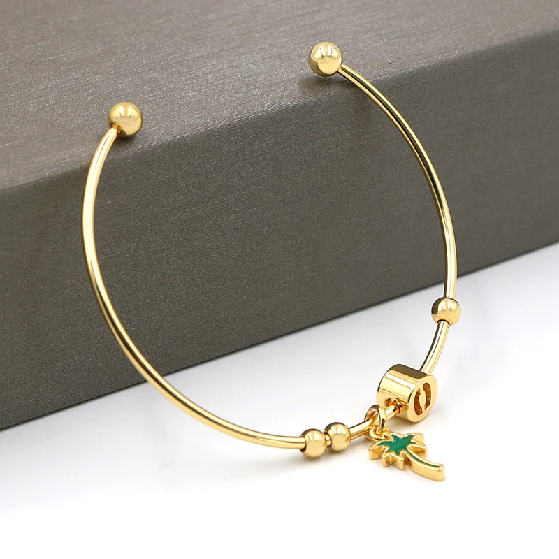 Kookospuun avoin rannekoru on muodikas ja trooppinen rannekoru. Tämän rannekkeen teema on kookospuu, ja kookospuun kuva on integroitu rannekkeen suunnitteluun. Kookospähkinäpuun vihreä väri erottuu kokonaiskullanväristä, jolla on silmiinpistävä vaikutus. Kookospuun avoimen rannekkeen muoto on valtamerityyli, ja kookospähkinäkuvio lisää romanttisen ilmapiirin trooppisesta lomasta.