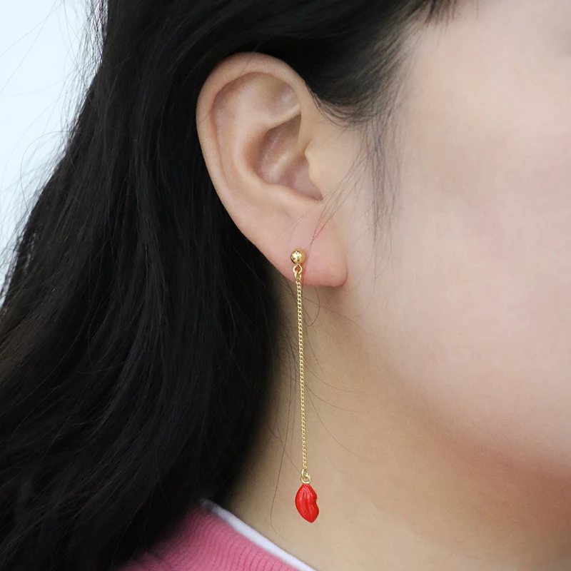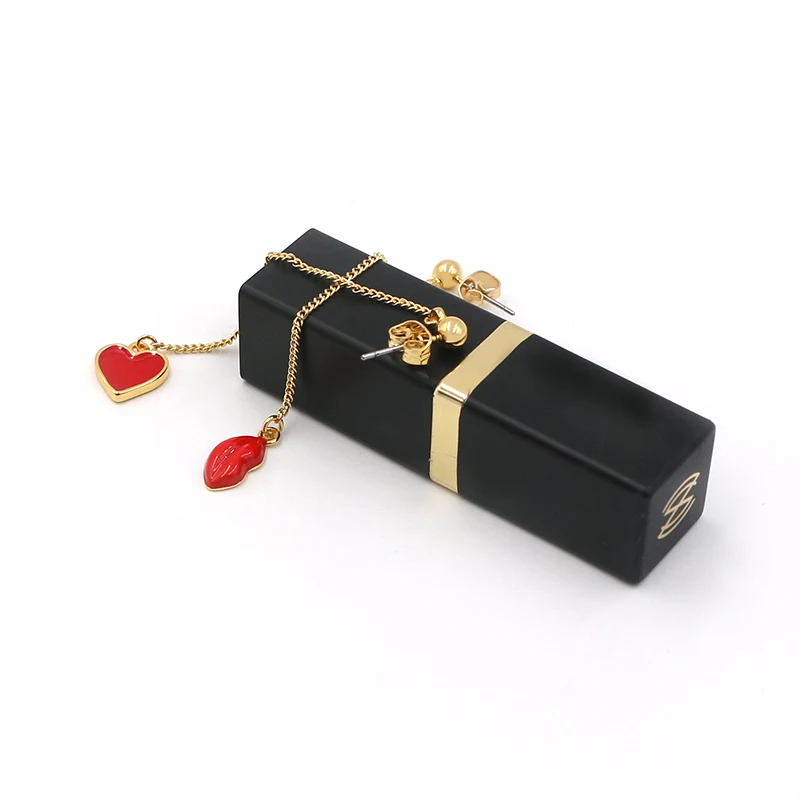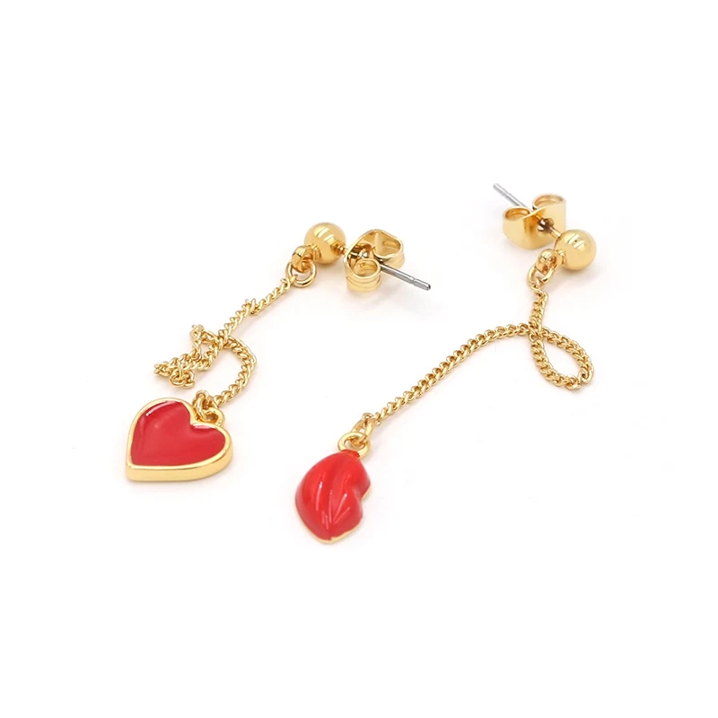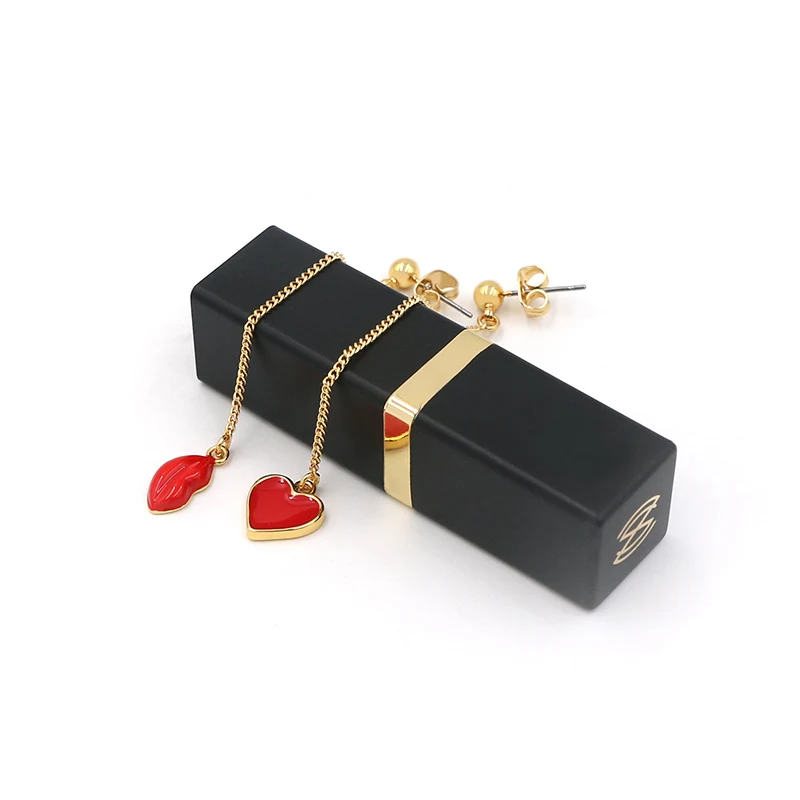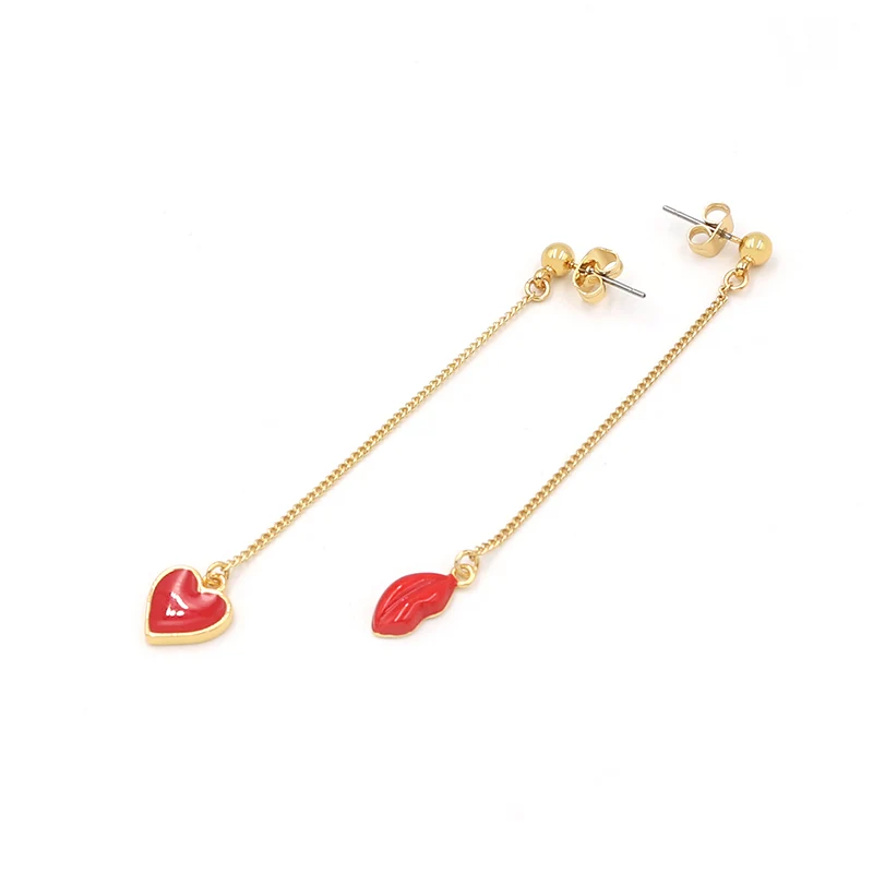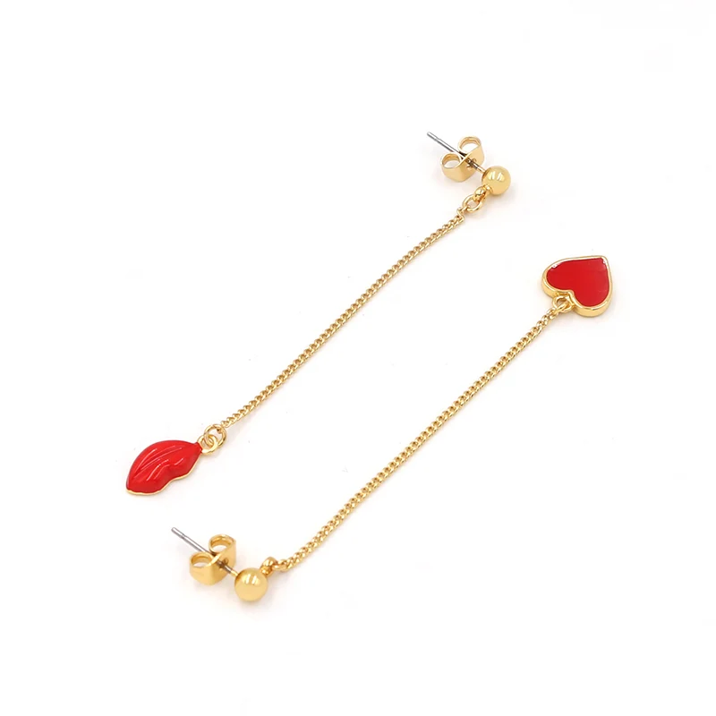 Hot Tags: Kierto korvakorut pitkillä punaisilla emalilla sydämellä ja huulipisaroilla