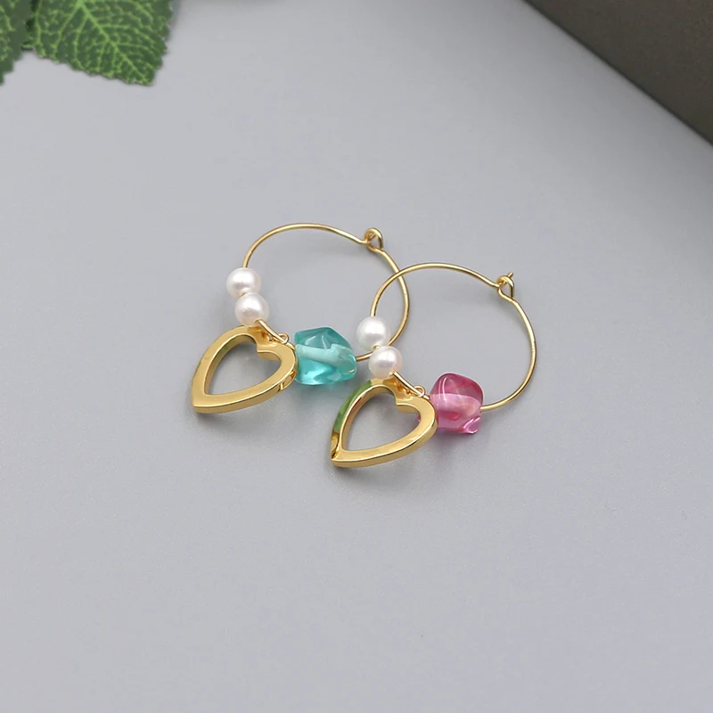 Tehdasmme on ollut korujen valmistusteollisuudessa lähes 20 vuotta, ja sillä on oma vakaa helmitoimittaja. Sekä luonnollisia helmiä että helmiä on saatavana. Näiden kullattujen messinki -sydämen helmet hartsihelmien korvakoruilla voivat olla luonnollisia helmiä tai jäljitelmähelmiä, vaatimusten mukaan. Väri ja muoto voidaan myös mukauttaa tarpeidesi mukaan.