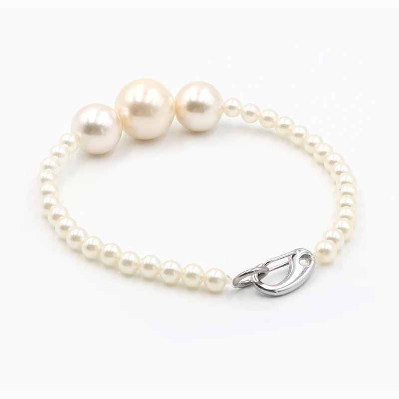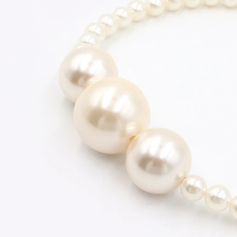 Lauseen keskellä Pearl-kaulakoru, suuri, pullea off-valkoinen helmi on kuin yötaivaan kirkkain tähti, joka säteilee viehättävään haloon, mikä tekee pääntietäsi pehmeämmän ja hoikkaamman. Molemmin puolin pienemmät helmet ovat tiiviisti kiinnittyneitä, kuten timanttia ympäröivät tähdet, luonnollisella siirtymisellä ja rikkailla kerroksilla, jotka osoittavat kekseliäisyyttä.